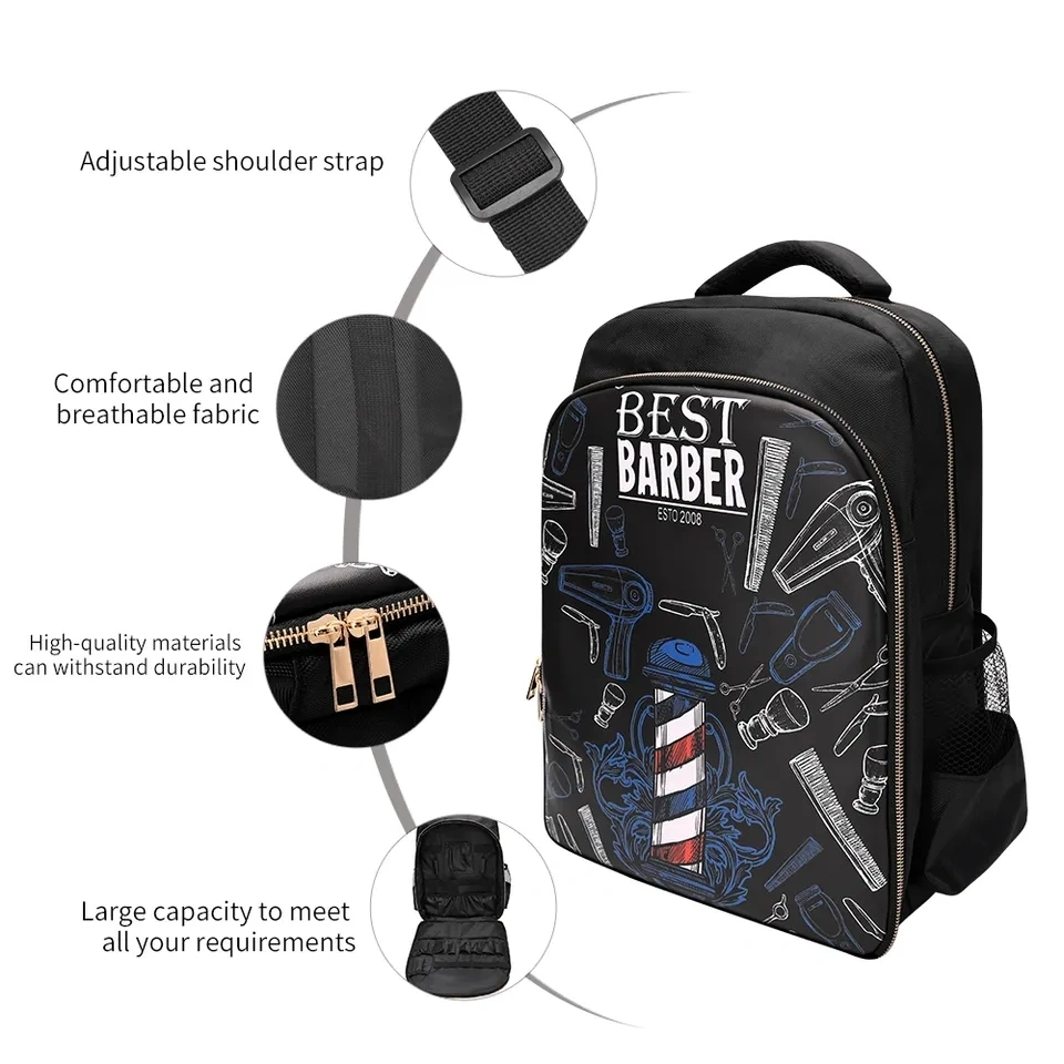 【Large Capacity】:Professional barber tool backpack can store scissors, combs, hair clippers, hair dryers, hair straighteners, combs, brushes, poncho spray bottles and other large tools, it is the ideal backpack for your barber tools.