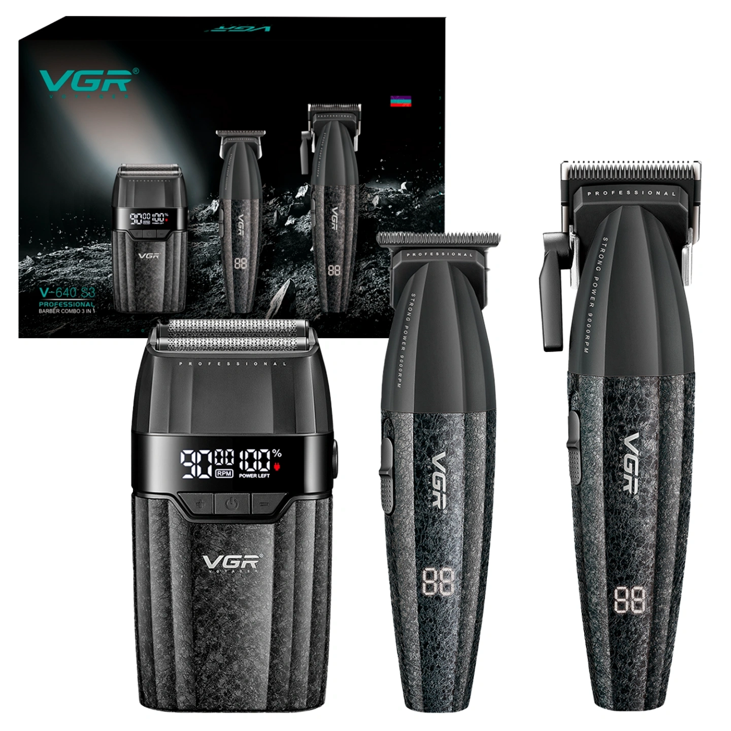 INTELLIGENT TORQUE POWER MOTOR:The VGR640S3 hair clippers and trimmers set are equipped with a high-performance intelligent torque motor featuring dual-speed control, delivering up to 9000 RPM for smooth, precise cutting. Designed to handle all hair types and styles, it ensures seamless speed transitions for professional results. The electric mens foil shaver adopts the same advanced motor system with three adjustable speeds—7000, 8000, and 9000 RPM—offering a customizable shaving experience that’s both efficient and close. This versatile motor setup makes the set perfect for both barbers and home grooming