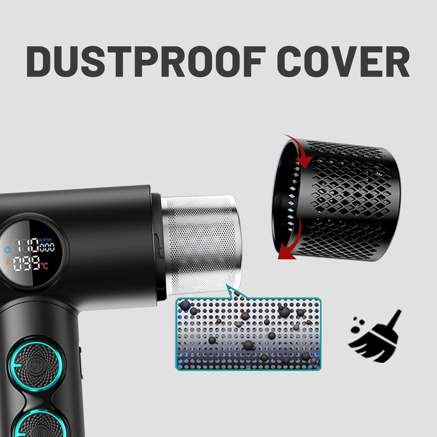 Adjust speed for drying needs.
